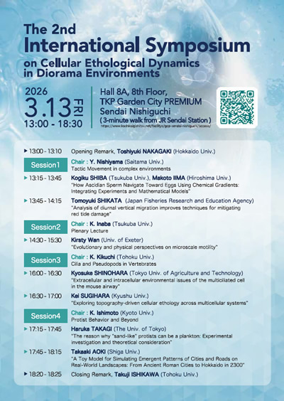 微細藻類による環境赤潮と精子による生殖、卓越した新規細胞行動の探索の3つに焦点を絞り、ジオラマ行動力学の有効性を検証してまいります。