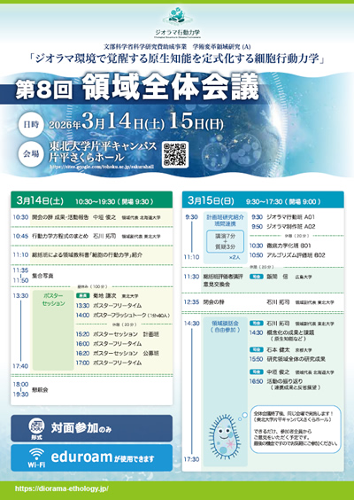 文部科学省科学研究費 助成事業 「学術変革領域研究(A)」 ジオラマ環境で覚醒する原生知能を定式化する細胞行動力学